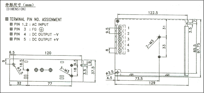 85~132VAC/170~264VAC開關(guān)選擇 |